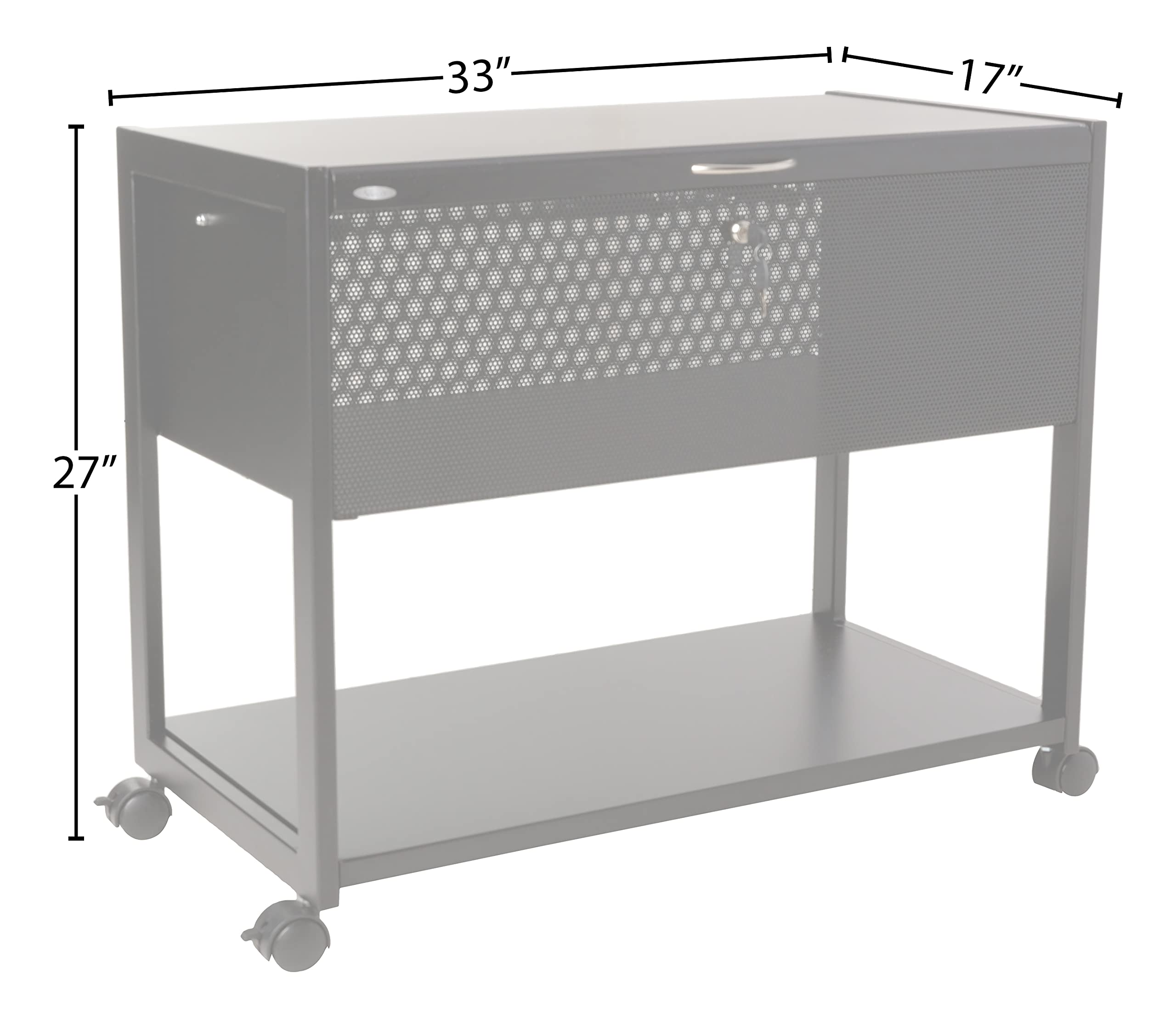 - ADJUSTABLE- Steel wire mesh locking top adjustable mobile file, 2 keys MULTIPLE SECTIONS- Two sections of filing hold up to approximately 100 letter size front to back OR 50 letter size front to back and 50 legal size lengthwise hanging files EXTRA STORAGE- Lower shelf for additional storage DURABLE- Steel construction with durable powder coat finish LOCKING WHEELS- Mobile on four 2" dual wheel casters, two locking